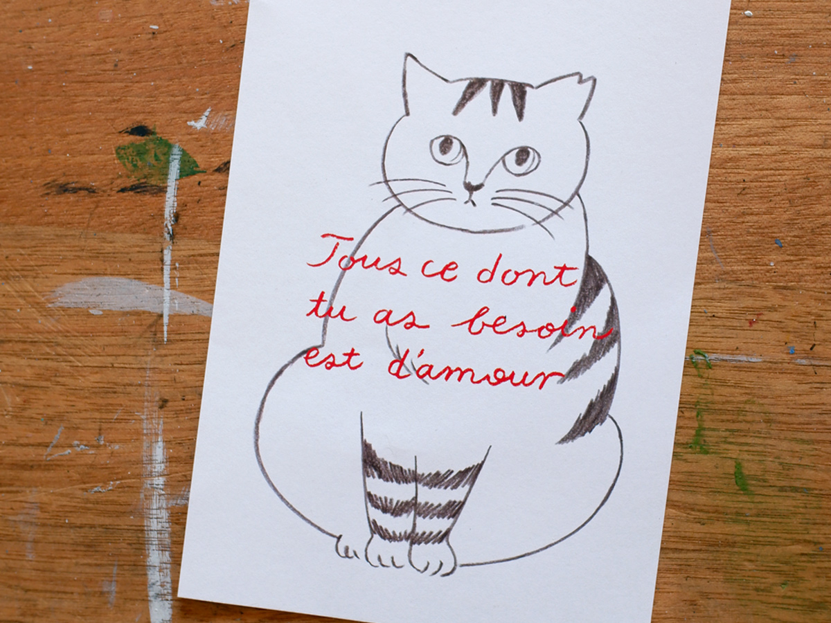耳先がV字カットされている猫のイラストが、Tシャツとクリアファイルになりました。